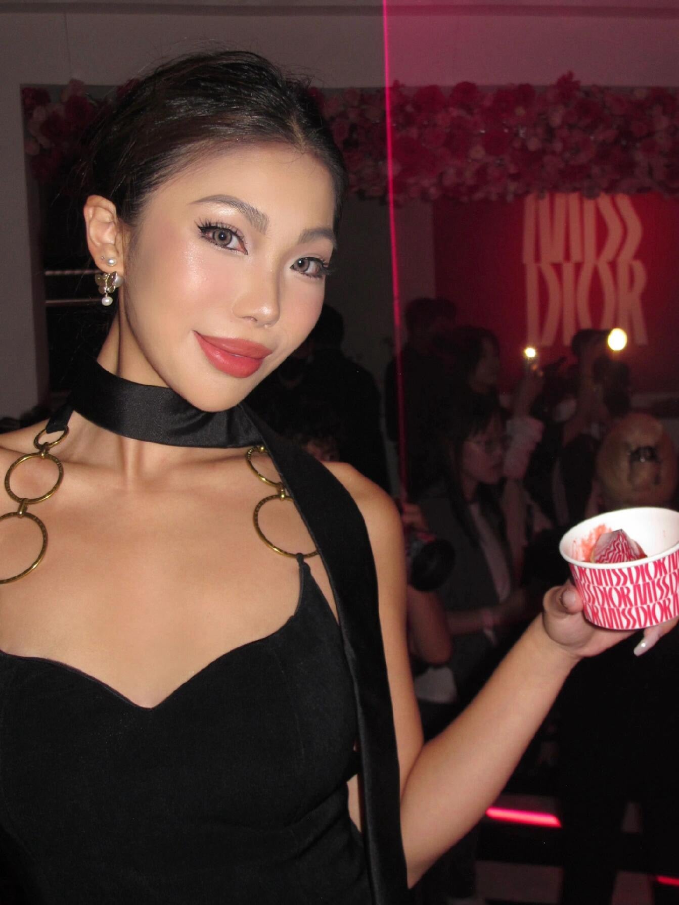 The gradient metal ring halter lends a unique decorative effect, resembling a shooting star in the night sky. The design ensures comfort and proper fit, with fabric connecting at the back of the neck and allowing for free movement.